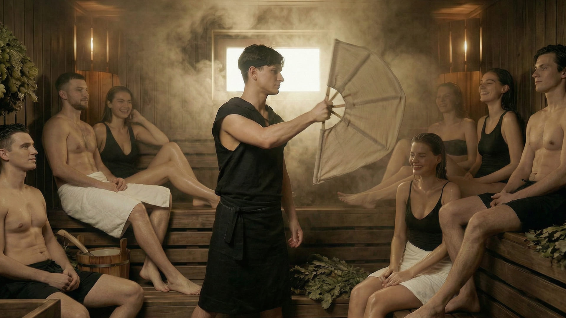 Сеанс длится 30–40 минут активного парения, с возможностью находиться на территории бани до 13:00.
