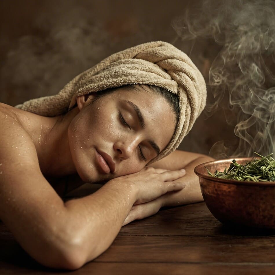Первый заход: прогрев, аромапарение с использованием трав